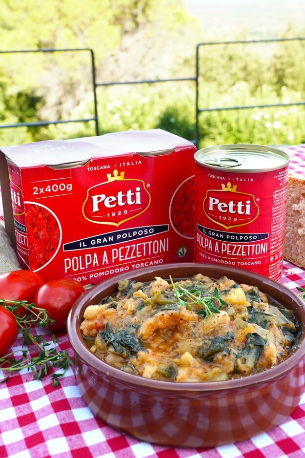Tuscan RibollitaTuscan Ribollita medium 40 min + cooling and “ribollita“ main course 4 people Il Gran Polposo BUY Share Preparations• Slice the celery, the carrot, and the onion into coarse cubes; • Sauté over a moderate flame, then add the diced potato; • Add the Chopped Tomatoes Petti; • Cut the kale, the chard and…